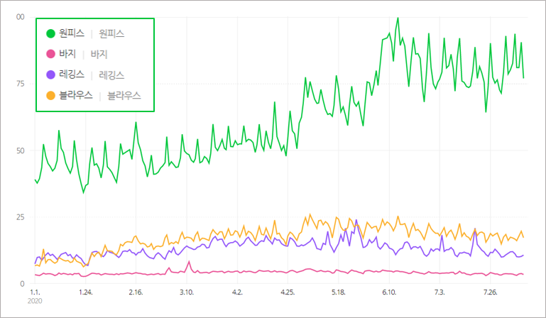 - 검색어 단어의 발현 횟수를 기반으로 트렌드 확인