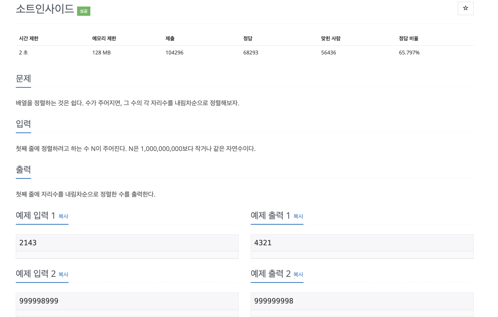 수가 주어지면, 각 자리수를 내림차순 정렬,,
