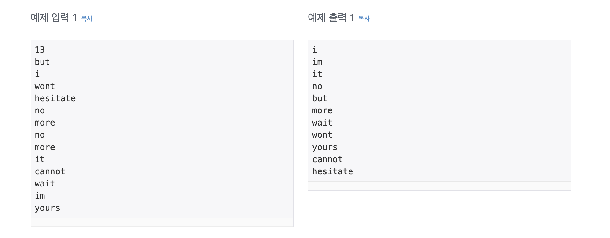 ( 단, 중복된 단어는 하나만 남기고 제거 )
