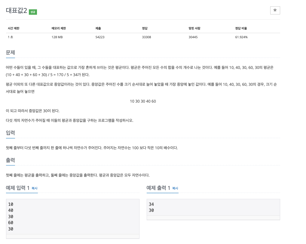 평균과 중앙값은 Numpy module에서 mean, median을 사용하면 되지만 백준에서는 사용이 불가능하여 정렬 후 check 한다.