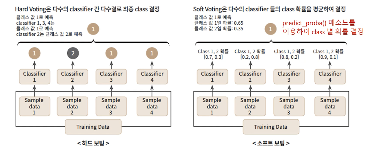 반복 모델링한 여러 결과값을 회귀에서는 평균, 분류에서는 투표를 통한 다수결로 최종 예측값을 결정