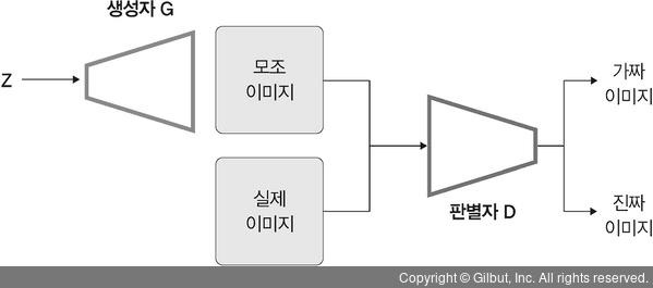 - 두 개의 네트워크가 서로 목표를 달성하기 위해 적대적으로 겨루는 구조