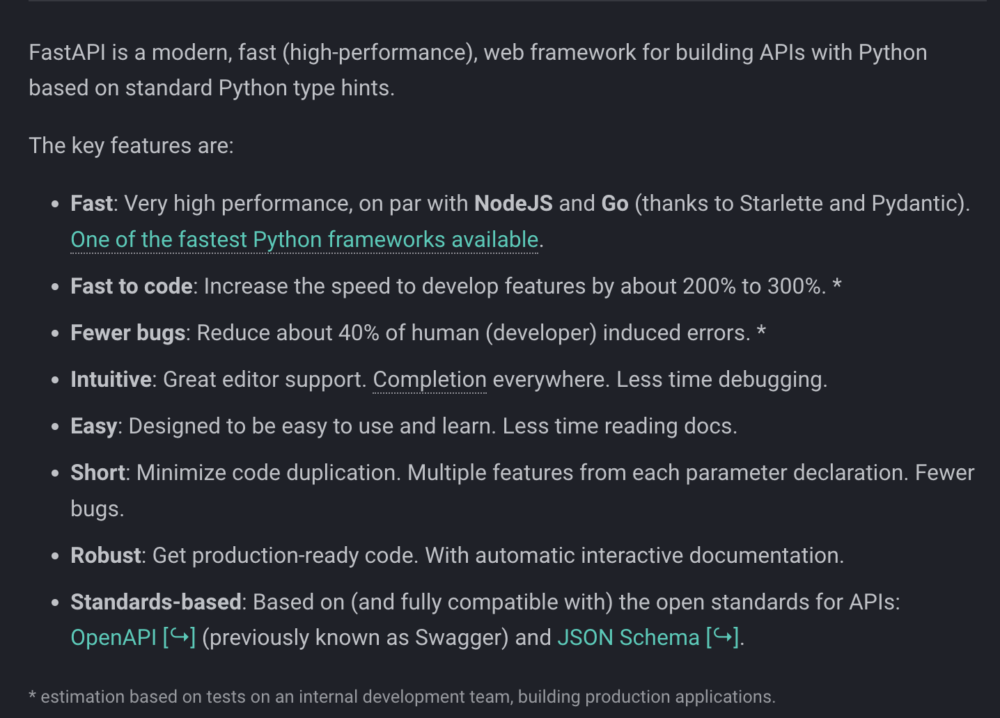 FastAPI는 공식 홈페이지에는 이렇게 적혀있다.