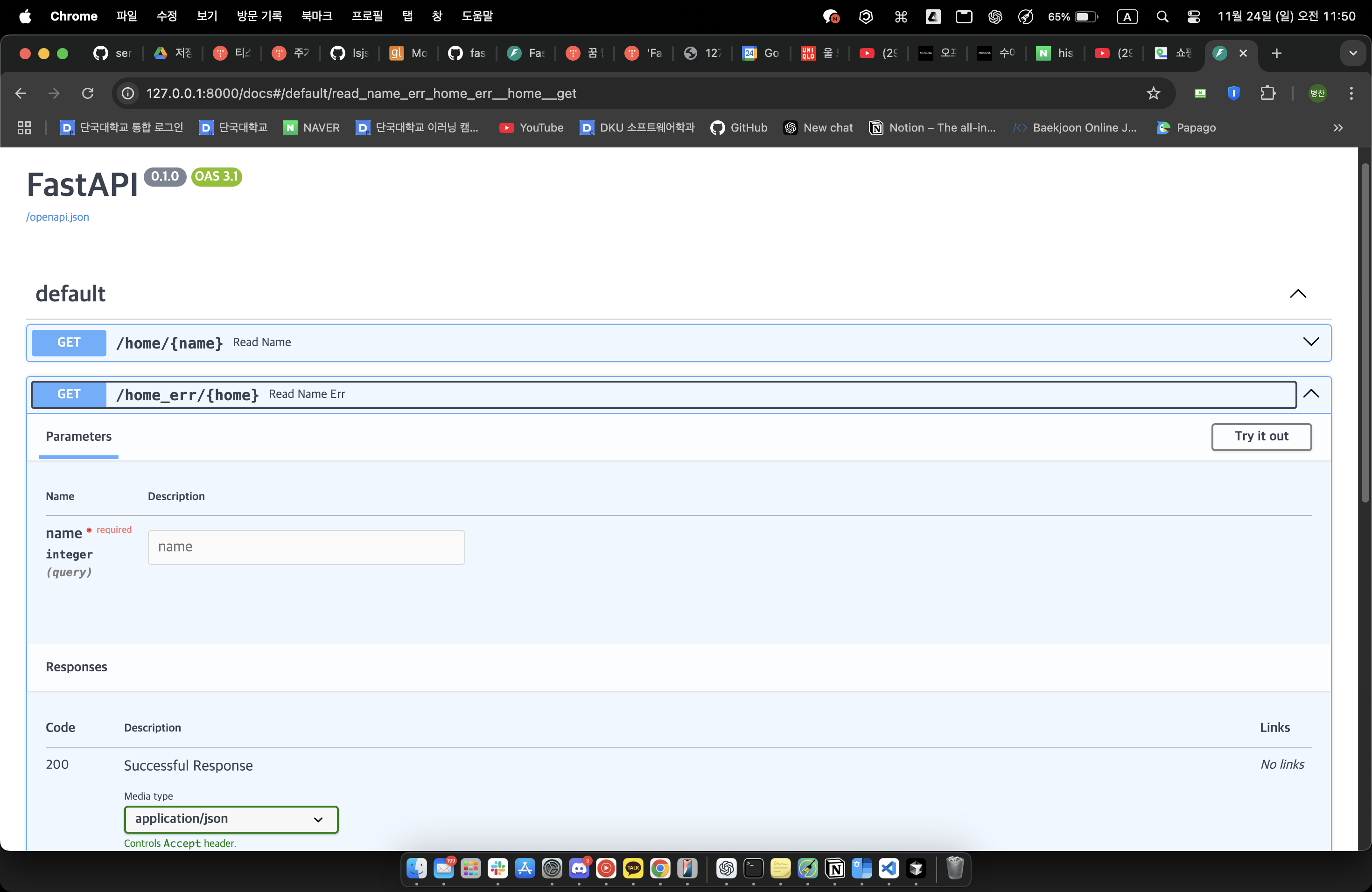 FastAPI Swagger UI 확인