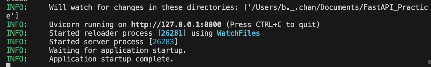 이 파이썬 파일 이름이 main 이므로 main:app을 uvicorn 으로 실행하겠다는 의미를 지님. reload 는 update 등이 일어났을 때 reload 하겠다는 의미이다.