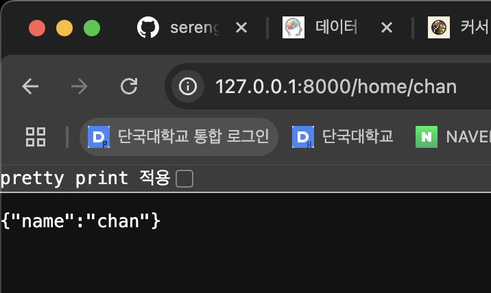 - /home 경로 : 127.0.0.0:8000/home