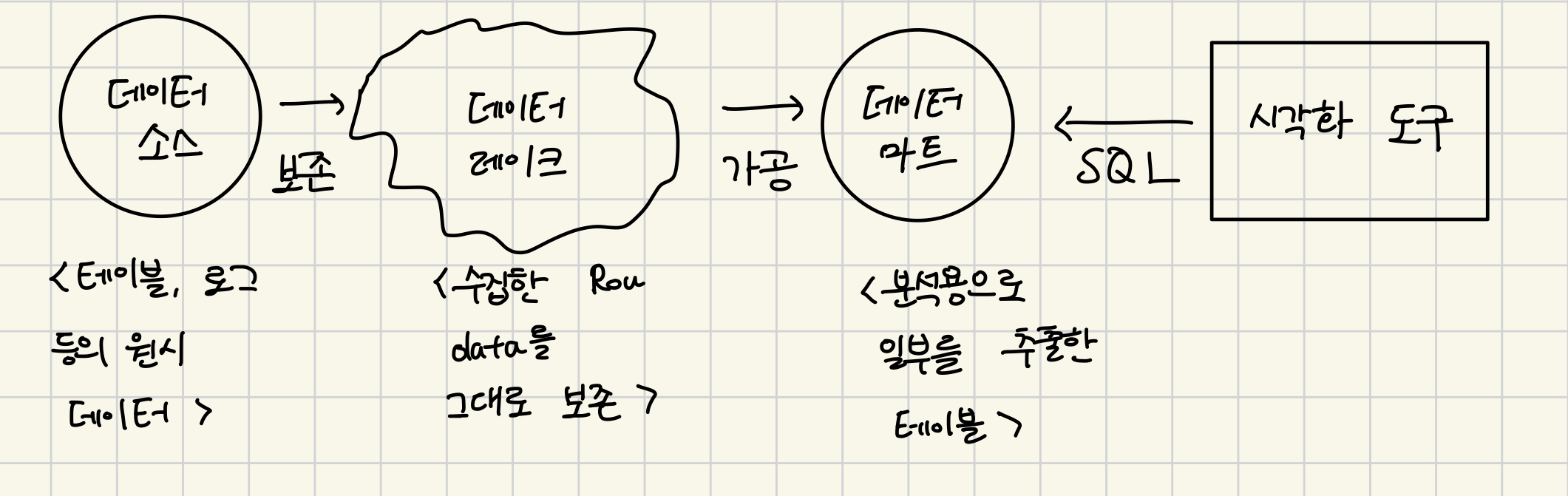 애드 혹 분석에서는 데이터 마트를 만들지 않은 채 데이터 레이크와 데이터 웨어하우스에 직접 연결하는 경우가 많음. (바로 확인하려고!)