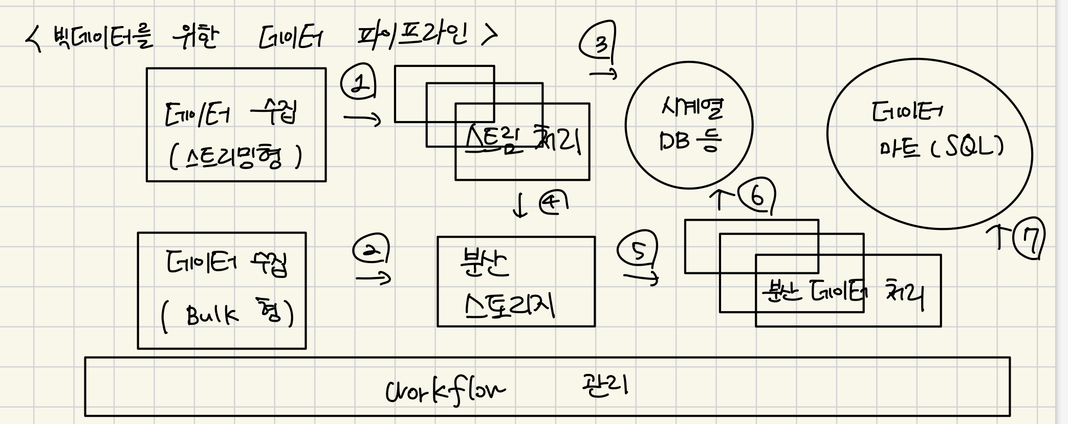 분산 시스템을 활용해서 데이터를 가공해 나가는 구조이다.