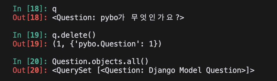 - 일반적인 python sell이 아닌 "python manage.py shell" 명령으로 Django Shell 을 실행해야 한다.